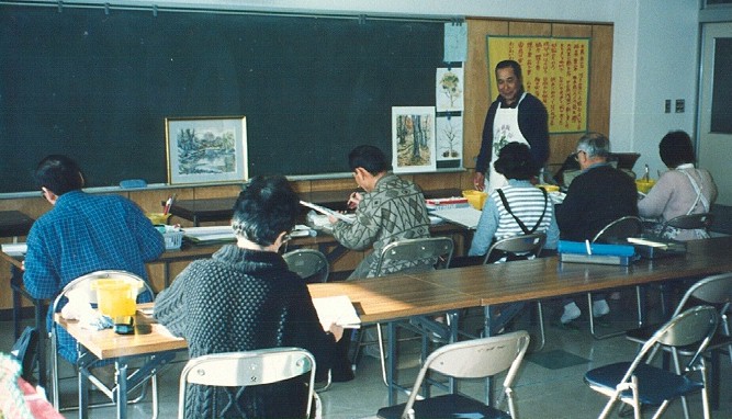 中学以来、絵筆をもつチャンスがなかったお父さん、お母さん達が集まって、水彩画教室で絵を習っています。