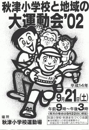 恒例の「秋津小学校と地域の大運動会'02」が、9月21日(土)にお天気に恵まれて実施されました。