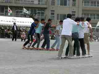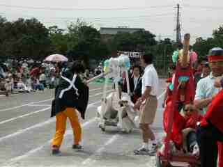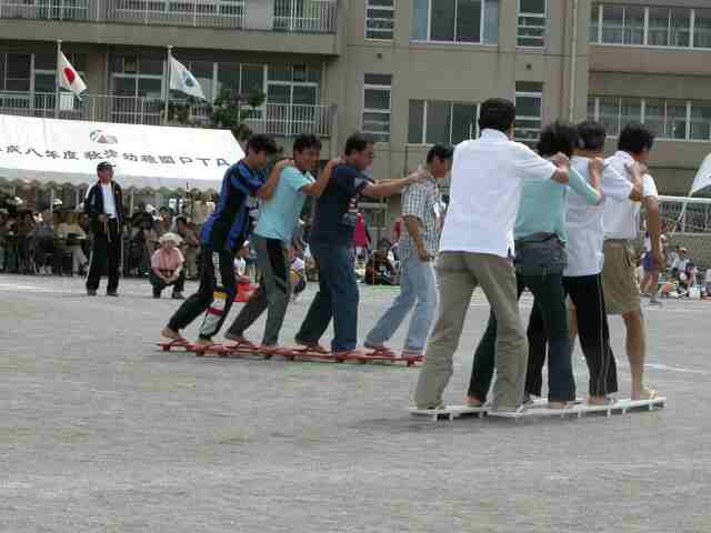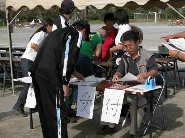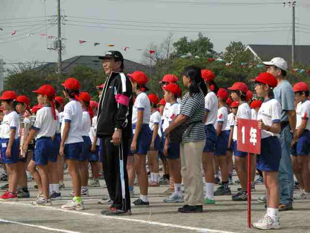 アンカー先頭は佐々木校長、後尾は橋村秋津コミュニティ会長。