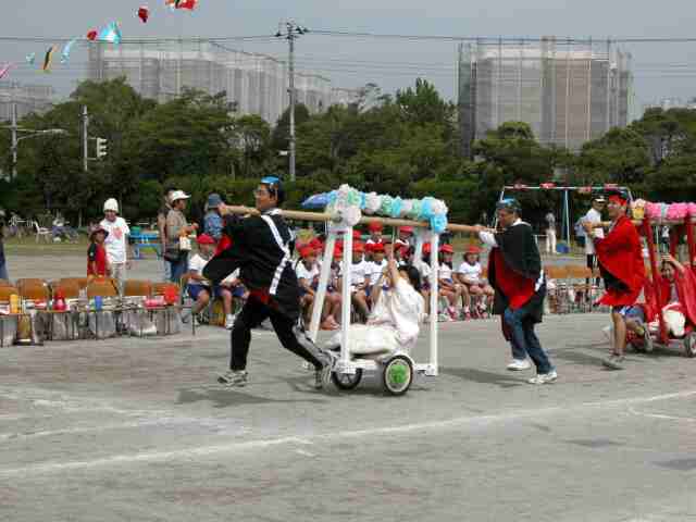 昨年からかごに車輪がつき、担ぎ手の負担が少なくなるとともにスピードアップしました。