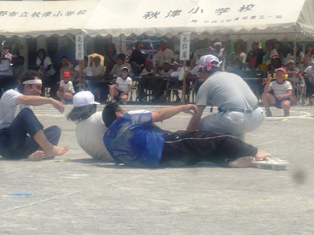 地域種目「ムカデ競走」のひとこまです。